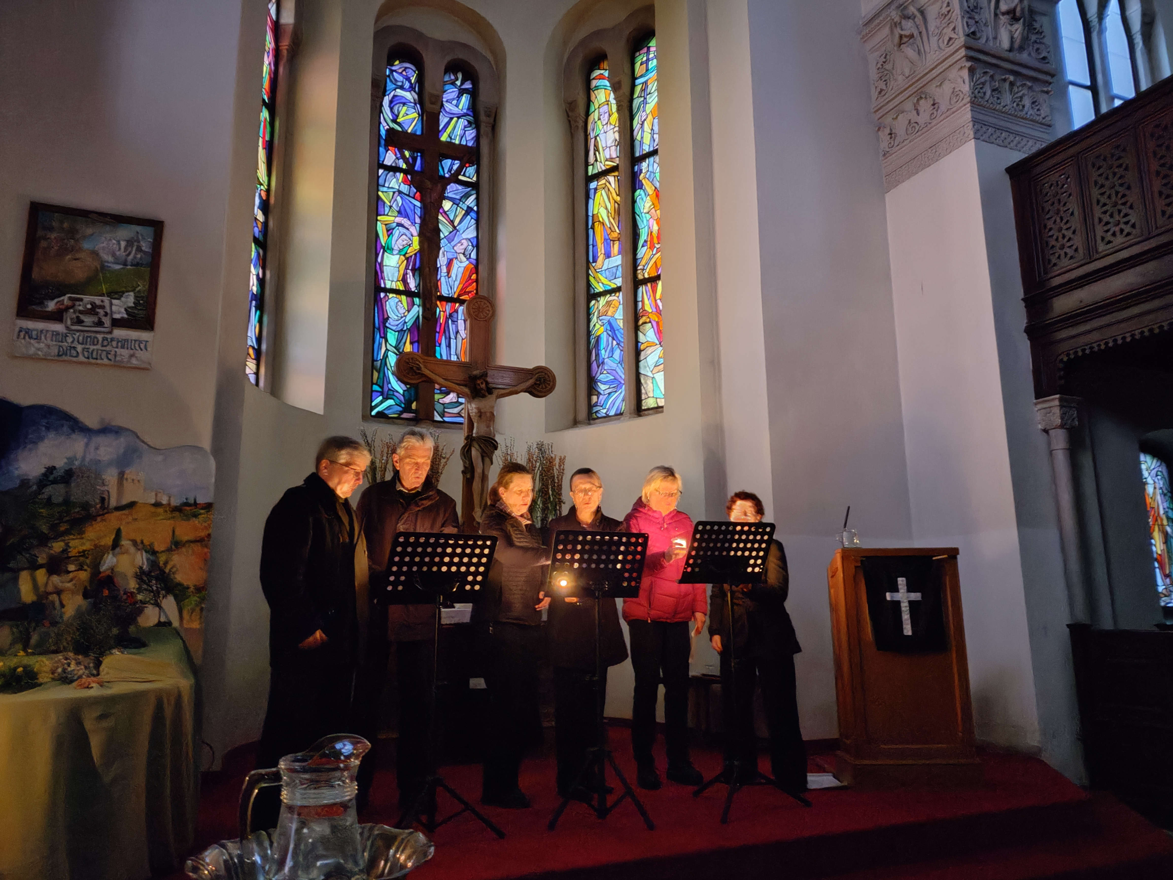 In der adventlichen Zeit haben wir den bereits zweiten autismusfreundlichen Gottesdienst gefeiert. Es war wieder ein reizreduzierter und mit Symbolen unterstützter Gottesdienst um ihn für alle angenehm und verständlich zu machen. Das erste Lied "Wir sagen euch an" wurde durch Chiara mit Gebärdenunterstützter Kommunikation begleitet, der Applaus am Ende war sogar ein stiller Applaus in Gebärdensprache. Vielen Dank fürs Mitfeiern und die Rücksichtnahme. Mehr Informationen zu autismusfreundlichen Gottesdiensten finden Sie hier.