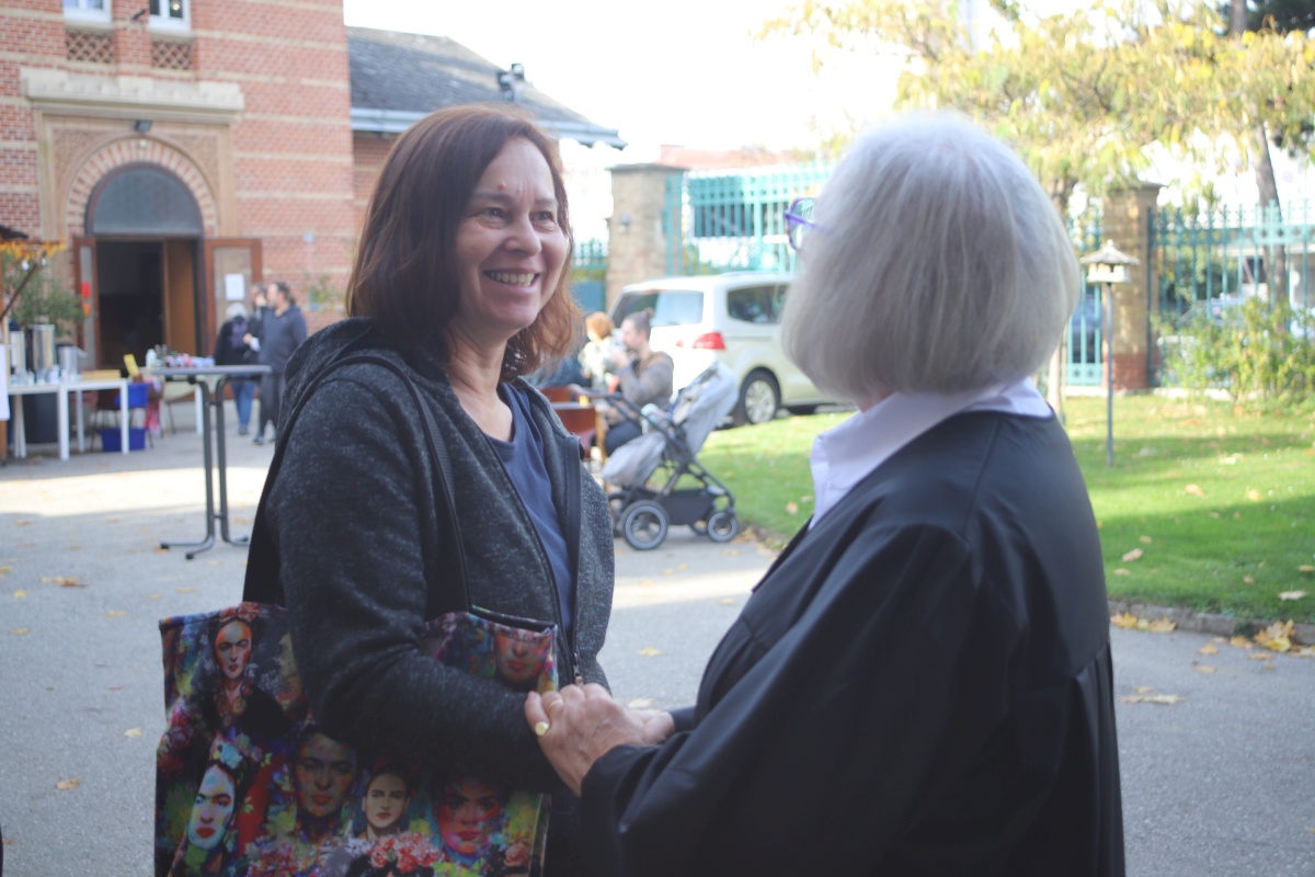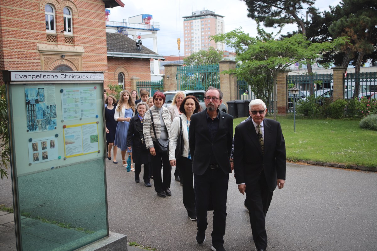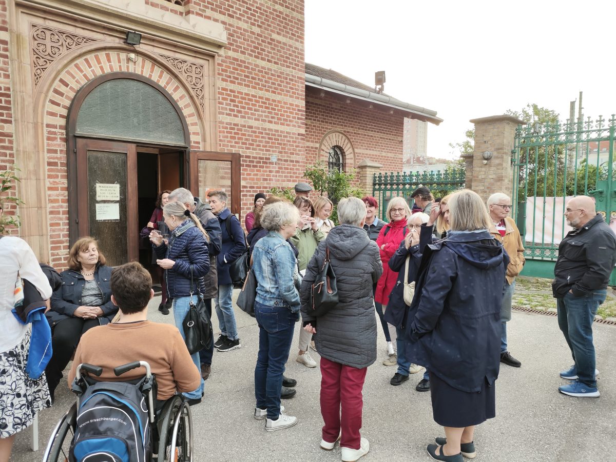 Viele Jahre lang feierte Pfarrer Dr. Michael Wolf einmal im Monat Gottesdienste am Tesarekplatz. Diese Zeit ist nun zu Ende gegangen. Der Abschiedsgottesdienst hatte so viele Besucher:innen wie nie zuvor. Im Anschluss kamen die Feiernden noch bei Speis und Trank zusammen.