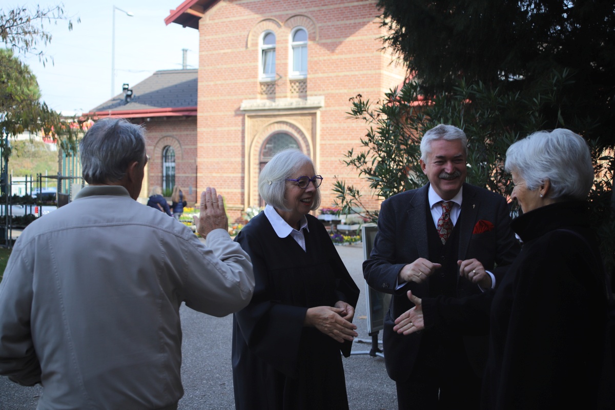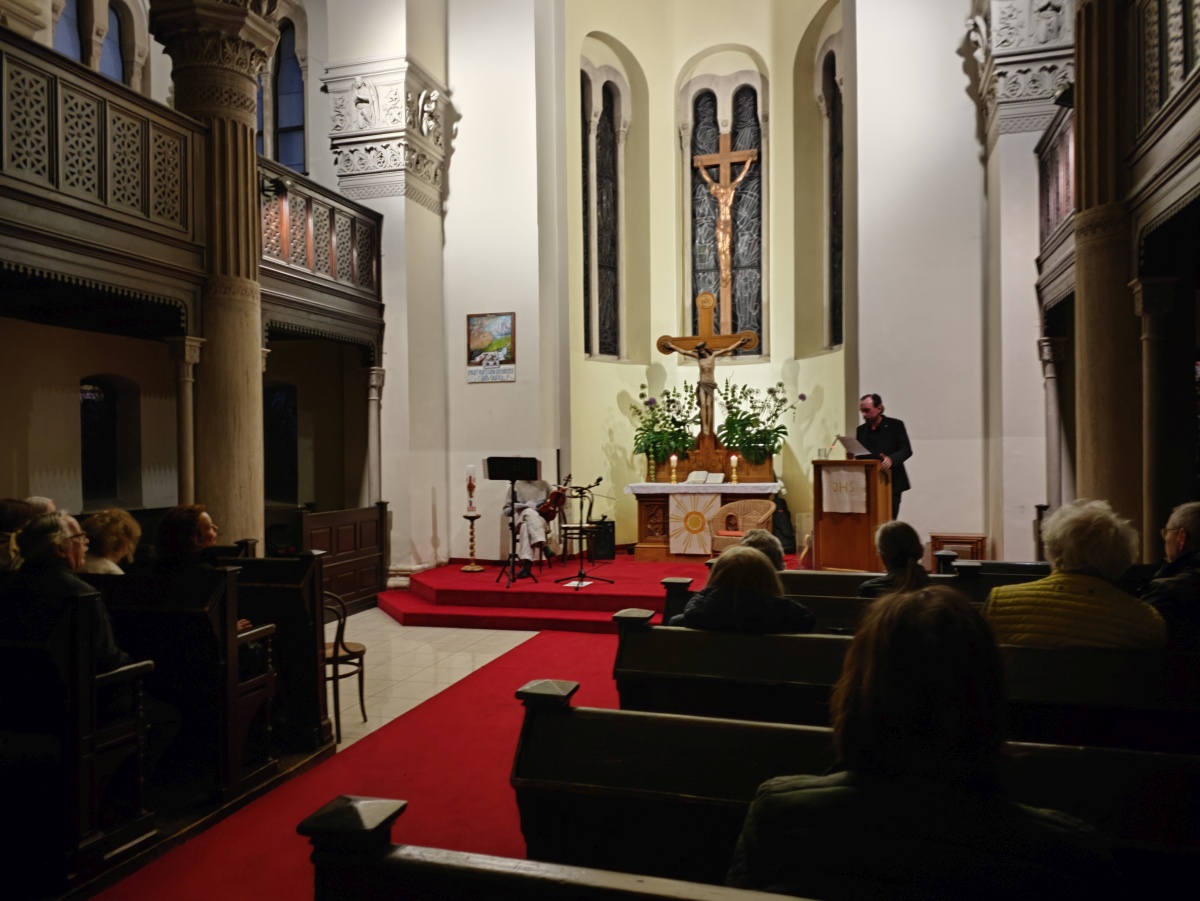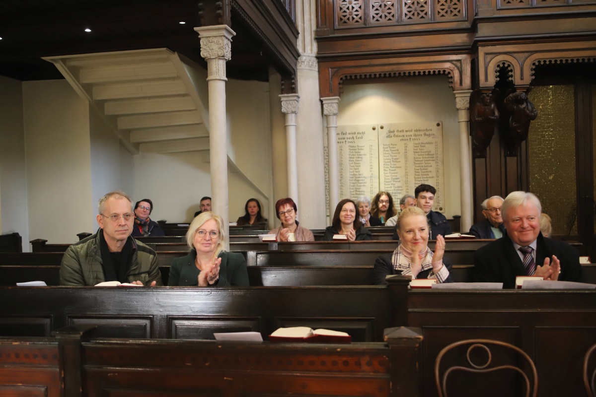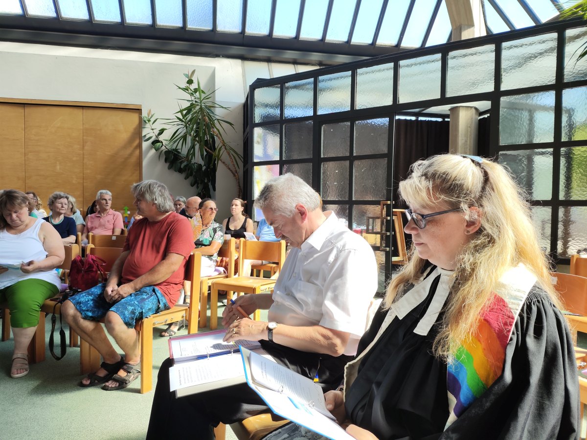 Viele Jahre lang feierte Pfarrer Dr. Michael Wolf einmal im Monat Gottesdienste am Tesarekplatz. Diese Zeit ist nun zu Ende gegangen. Der Abschiedsgottesdienst hatte so viele Besucher:innen wie nie zuvor. Im Anschluss kamen die Feiernden noch bei Speis und Trank zusammen.